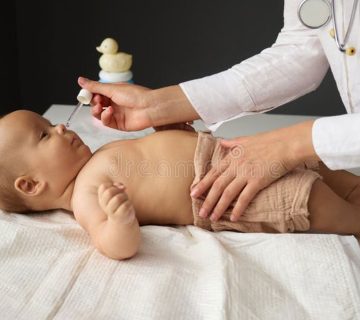 - استفراغ مکرر یا علائم کمآبی بدن (مانند خشکی دهان، گریه بدون اشک، کم بودن تعداد پوشکهای خیس).